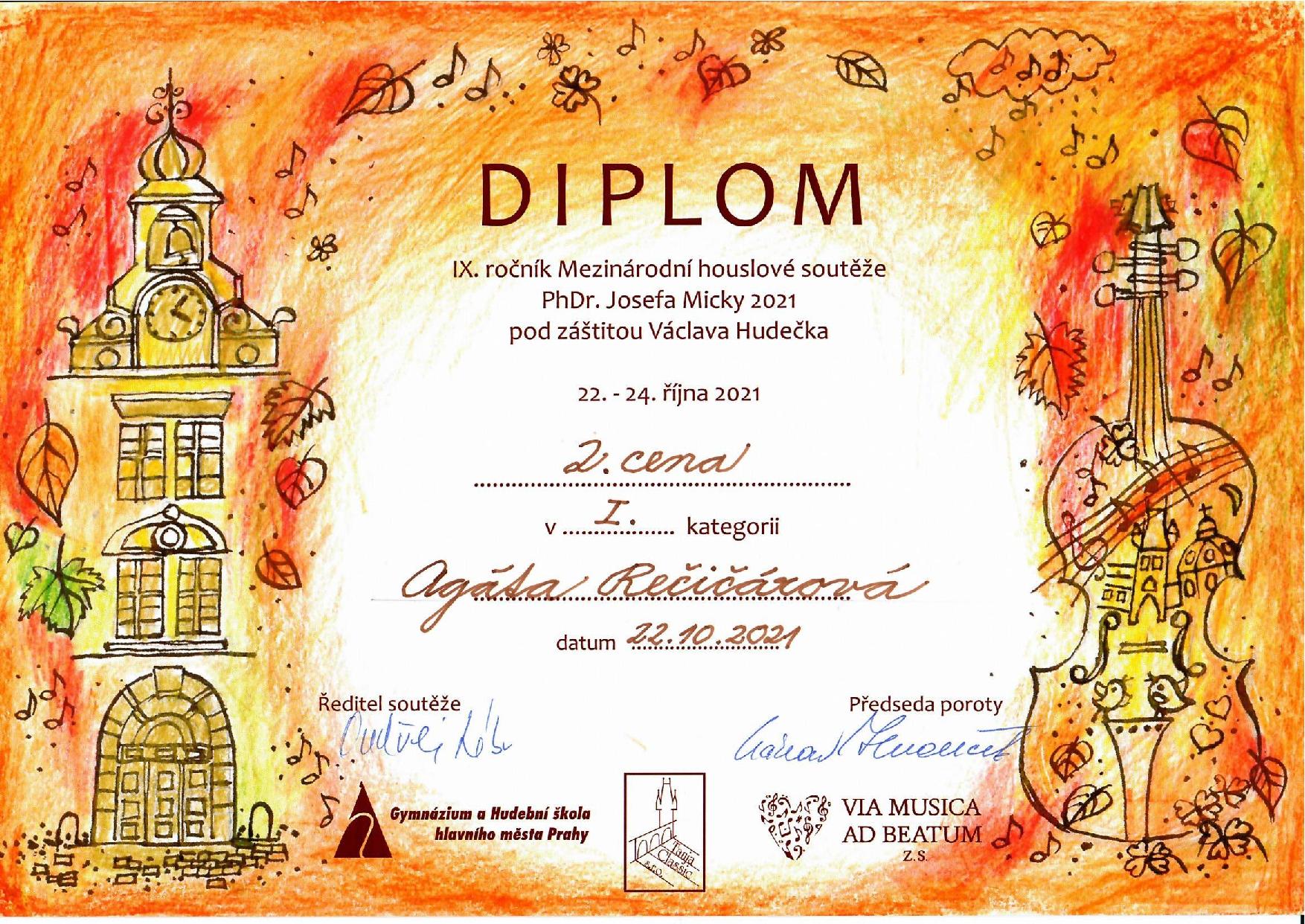 Soutěže se zúčastnila Agáta Rečičárová ze třídy p. uč. Jany Prefetové a za klavírního doprovodu svého bratra Filipa Rečíčára se umístila na krásném 2. místě.