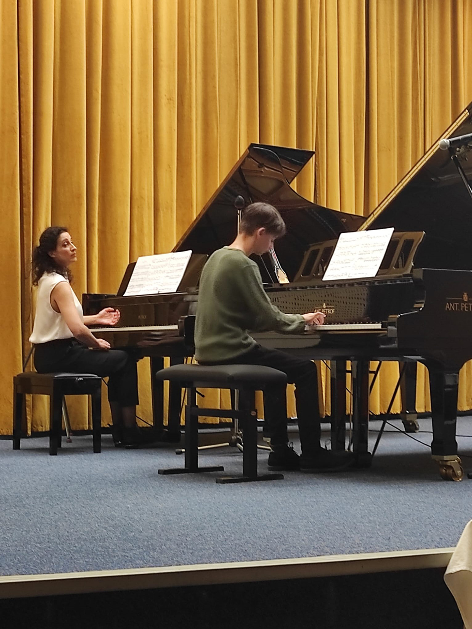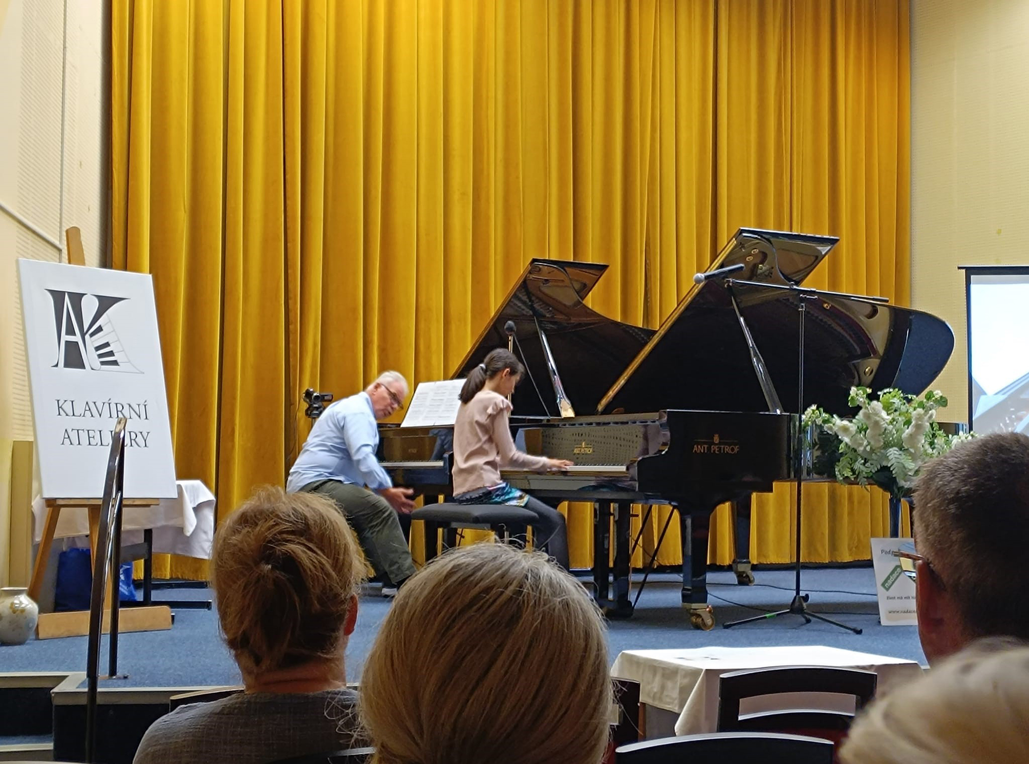 Tereza Hypšová z 5. ročníku 1. stupně a Martin Hypš ze 7. ročníku 1. stupně měli možnost pracovat pod vedením zkušených klavíristů a pedagogů prof. Ivana Klánského, prof. Zbyňka Marušky a doc. Jordany Palovičové. Zpestřením semináře byla přednáška PhDr. Hany Švajdové o improvizaci. Vyslechli jsme také krásné koncerty a měli možnost zakoupit nový notový materiál z nakladatelství Musica Gioia a e-noty. Příjemná byla i setkání po koncertech a mezi přednáškami, kdy jsme měli možnost sdílet své zkušenosti a zážitky s téměř stovkou kolegů ze ZUŠ nejen Moravskoslezského kraje.