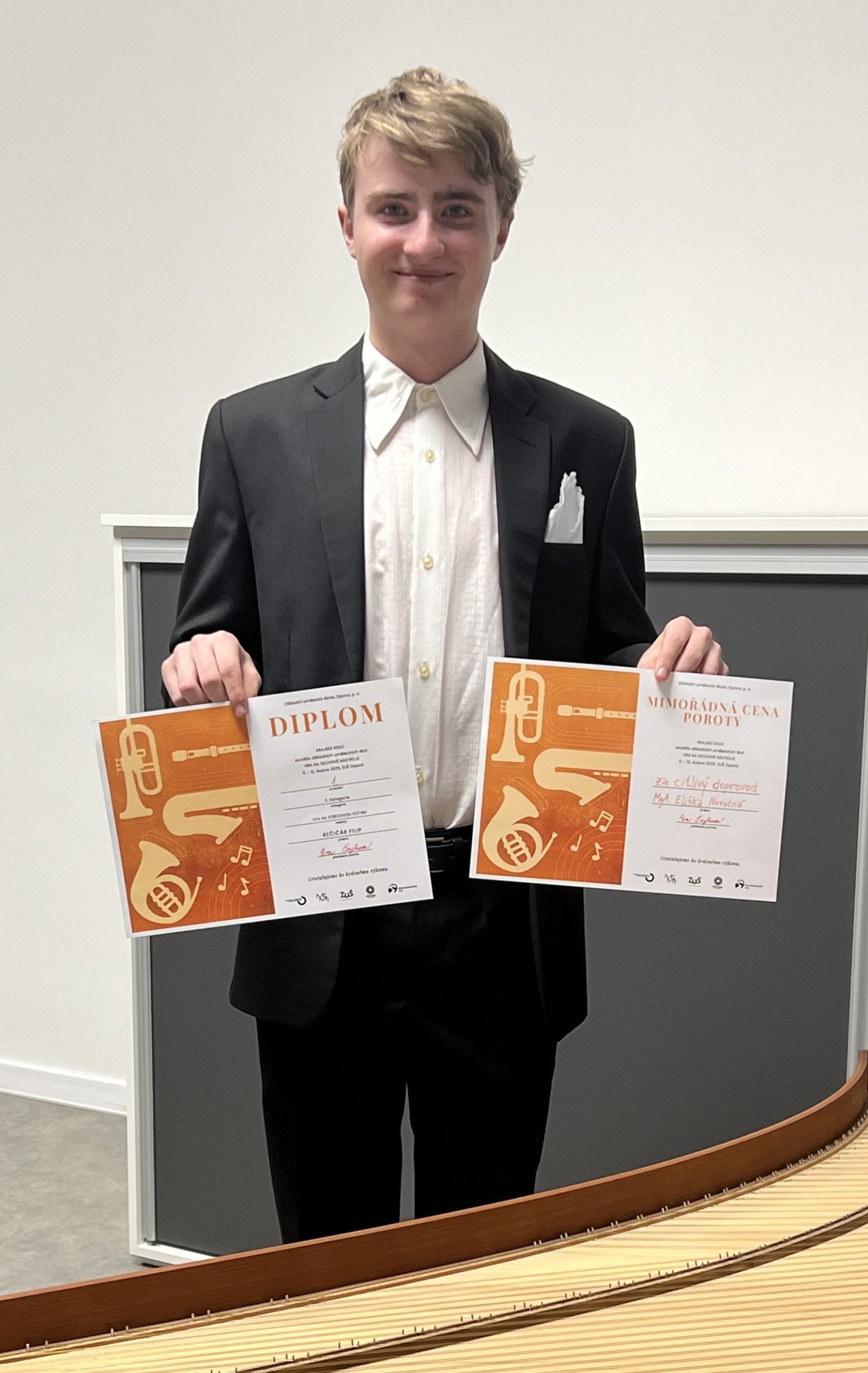 Žáci pana učitele Bronislava Jonszty - Leontýna Jantošová ve hře na klarinet s klavírním doprovodem Magdaleny Švábové získala 1. místo s postupem, Agáta Rečičárová (zobcová flétna) také 1. místo s postupem a Filip Rečičár (zobcová flétna) rovněž 1. místo s postupem. Oba sourozence na klavír doprovázela doc. MgA. Eliška Novotná. Porota udělila: Zvláštní ocenění poroty za pedagogickou práci panu učiteli Bronislavu Jonsztovi