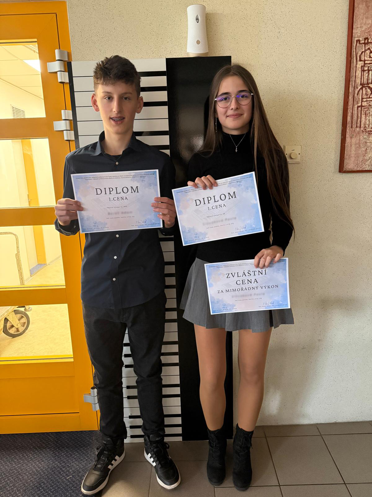Žák Adam Kubelka ze třídy pana učitele Libora Šipuly získal krásné 1. místo s postupem.